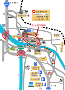 イベント当日は、会場および会場付近が「通行止め」となります。
