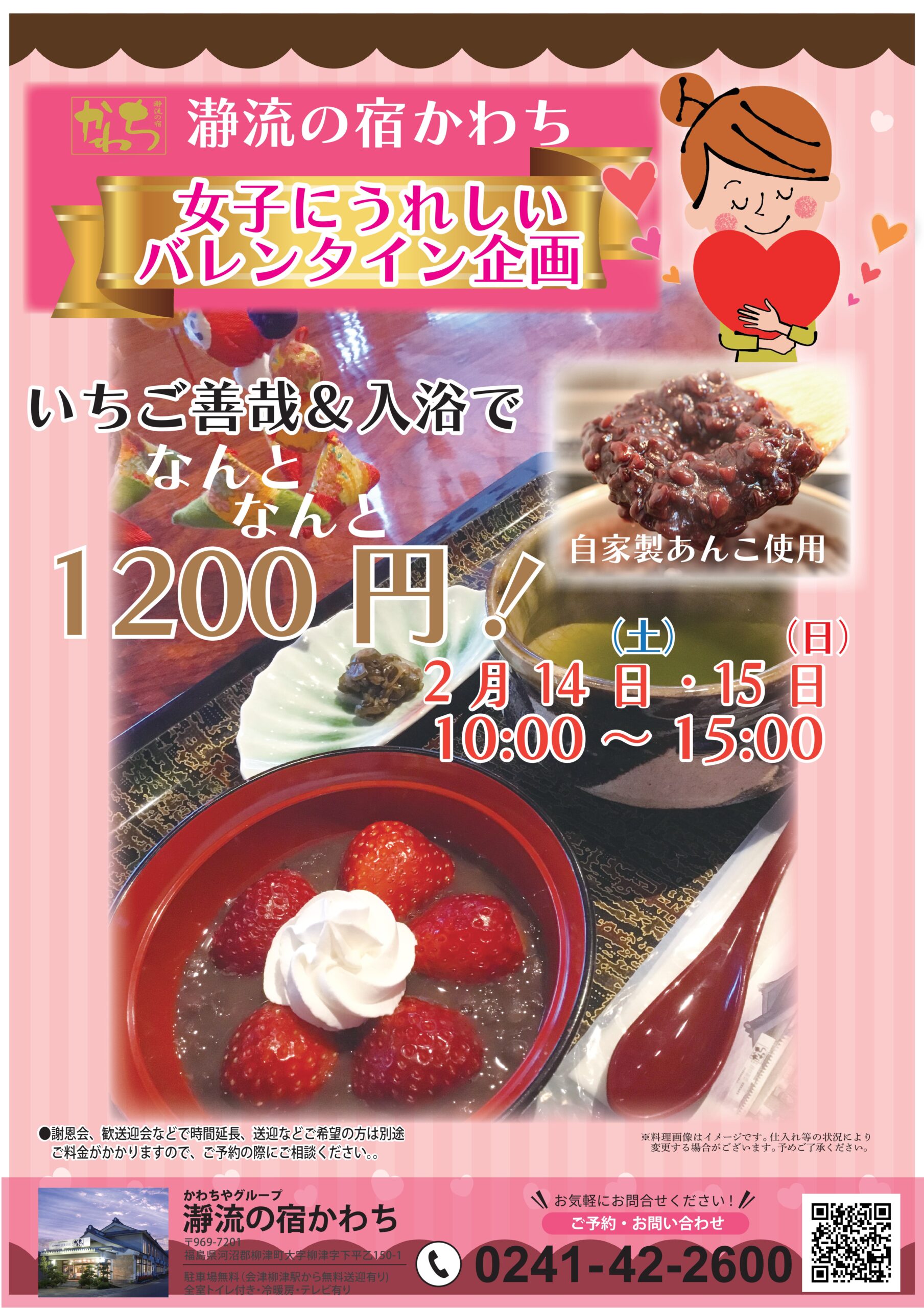 瀞流の宿かわちでは、2月14日・15日の2日間限定で、女性にうれしいバレンタイン企画を開催します。